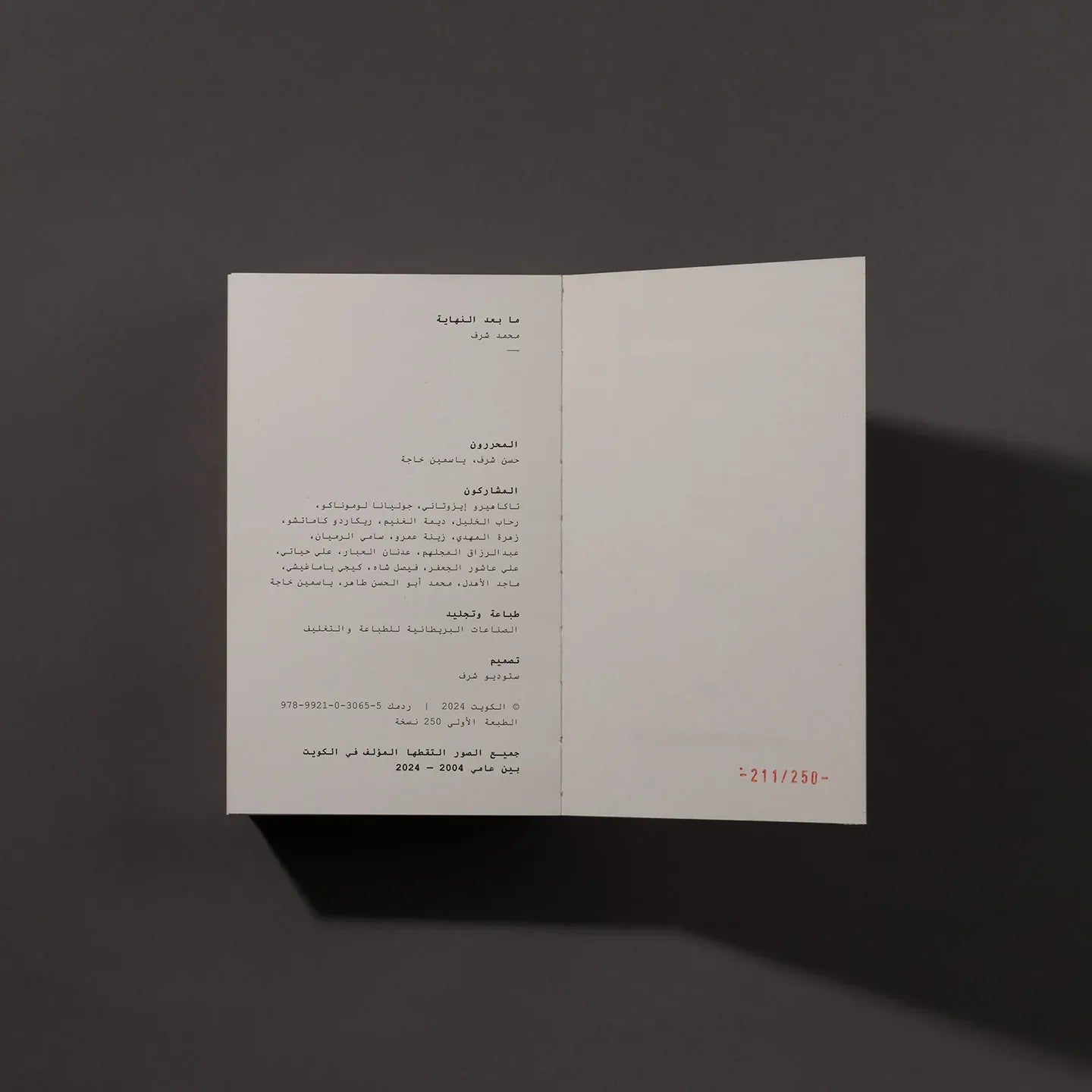 الطبعة: طبعة أولى محدودة من 250 نسخة، مرقمة