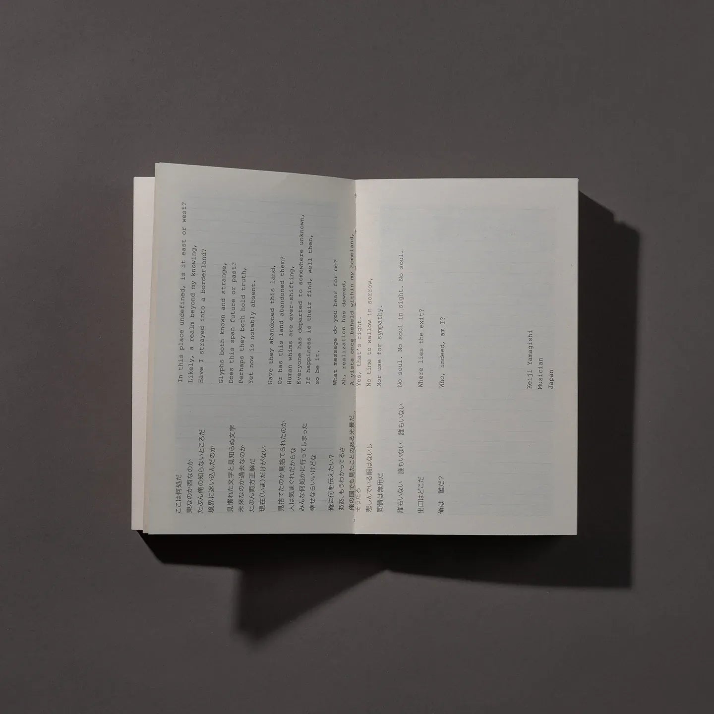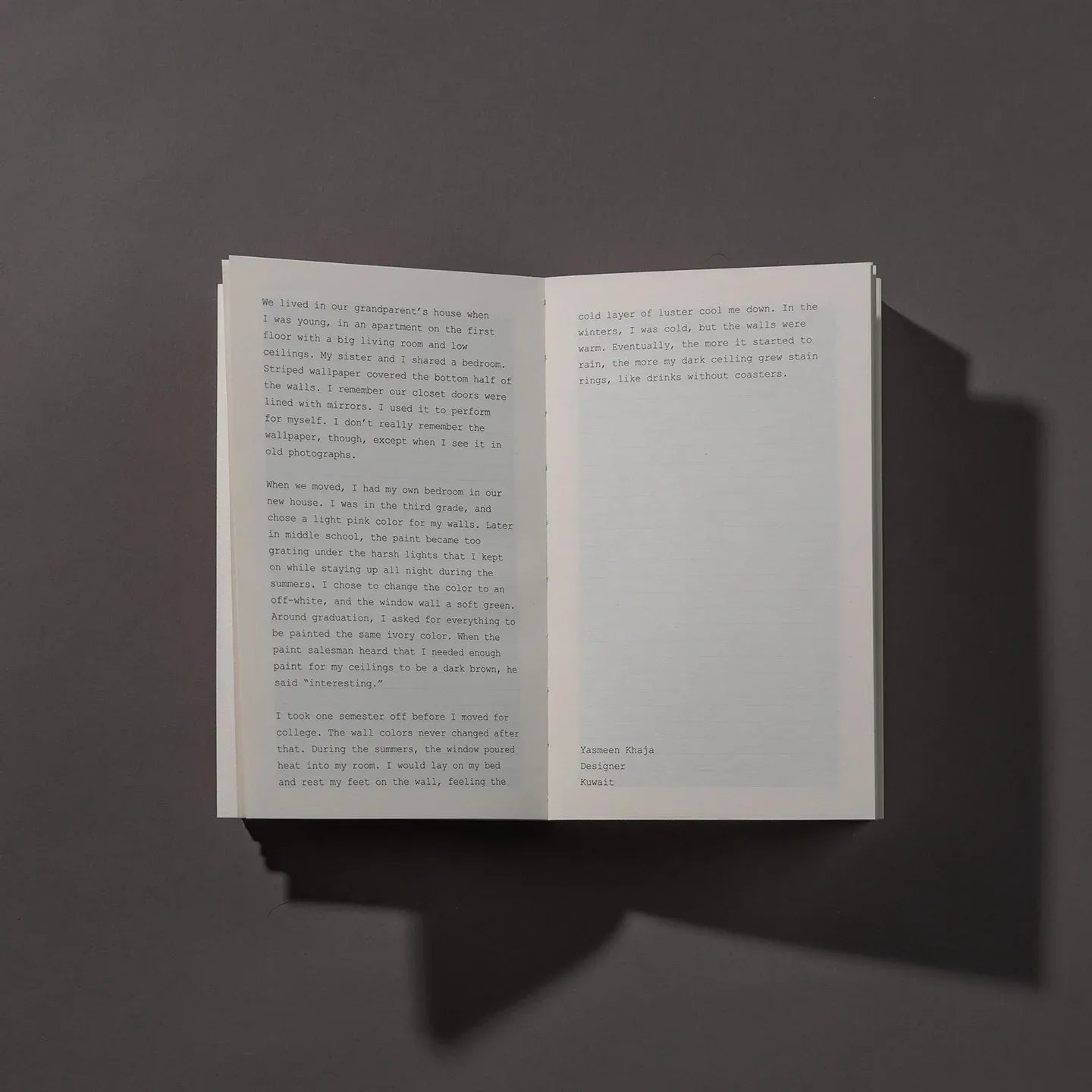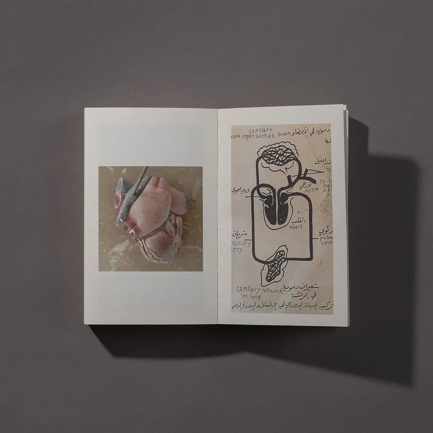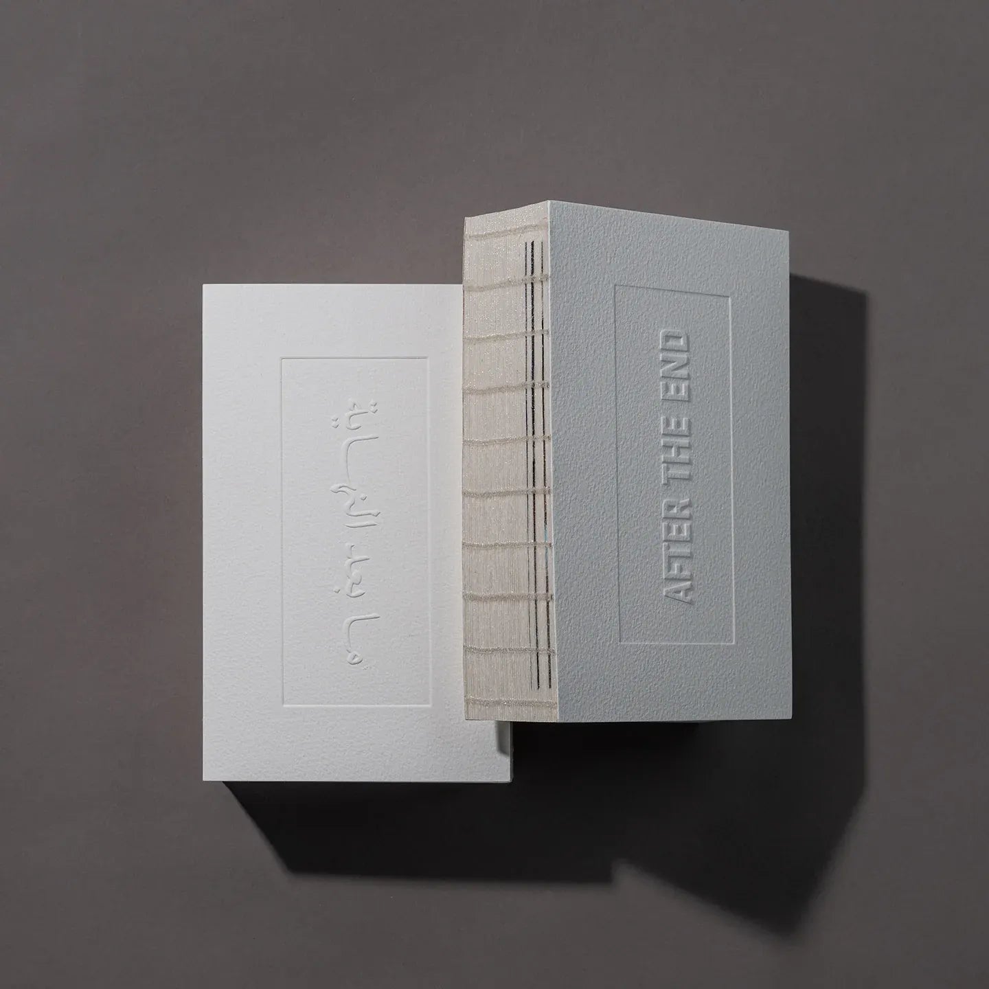 تحمل الكتب عناوين باللغتين الإنجليزية والعربية، ويمكن تصفحها من اليسار إلى اليمين، أو من اليمين إلى اليسار، أو من أي مكان بينهما. وهذا التصميم المتعمد يجعل الكتب تبدو غير ثمينة تقريبًا، تمامًا مثل الحياة المهجورة المنتشرة في جميع أنحاء الصور.