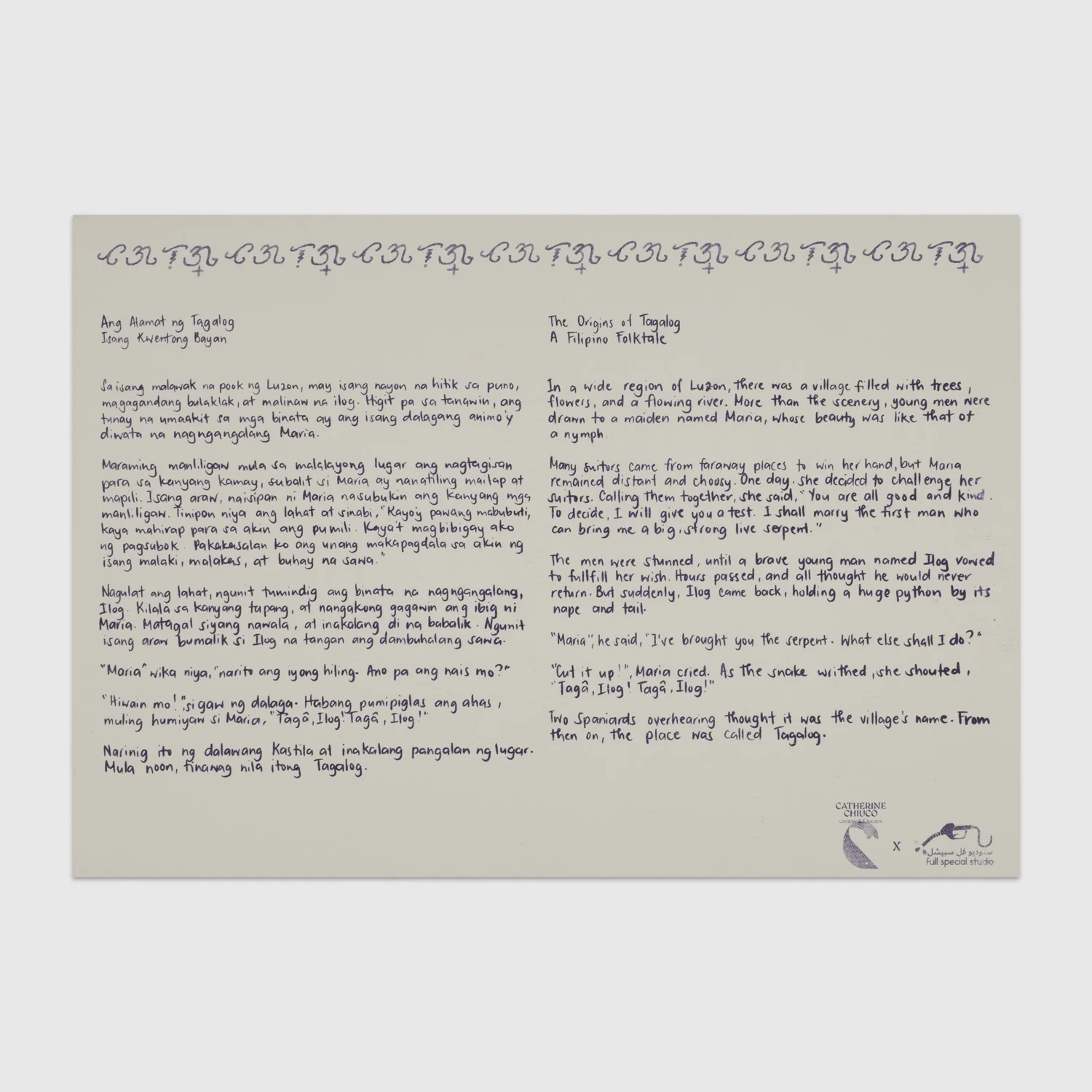 Catherine Chiuco is a designer, artist, and educator whose work explores the intersections of culture, identity, and purpose. She holds a BFA in Graphic Design from Virginia Commonwealth University in Qatar and a Postgraduate Certificate in Education from the University of Nottingham. Raised between the Philippines and Qatar, she draws from these perspectives to create work that connects people, memories, and places.