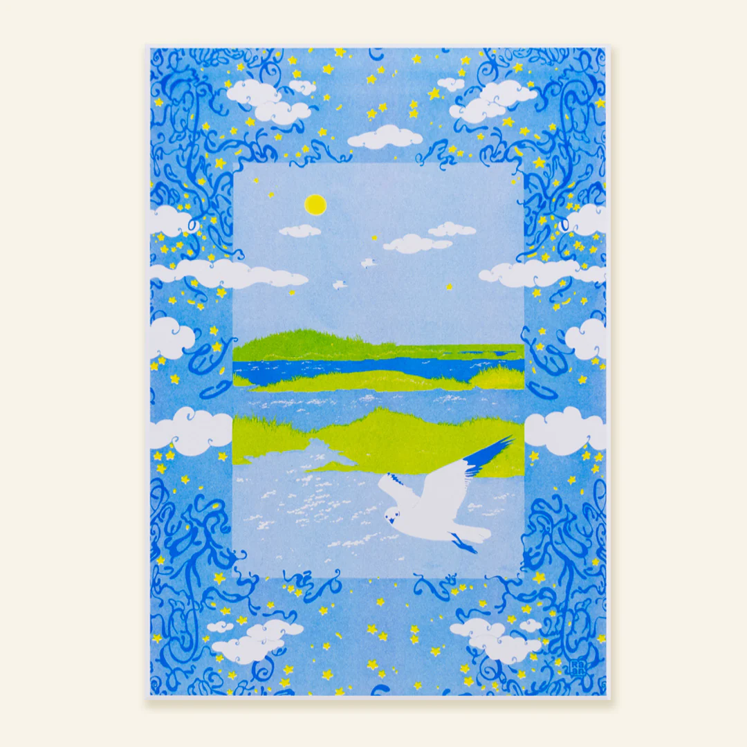 Daylight as envisioned by the artist, brought to life in a vibrant risograph poster.