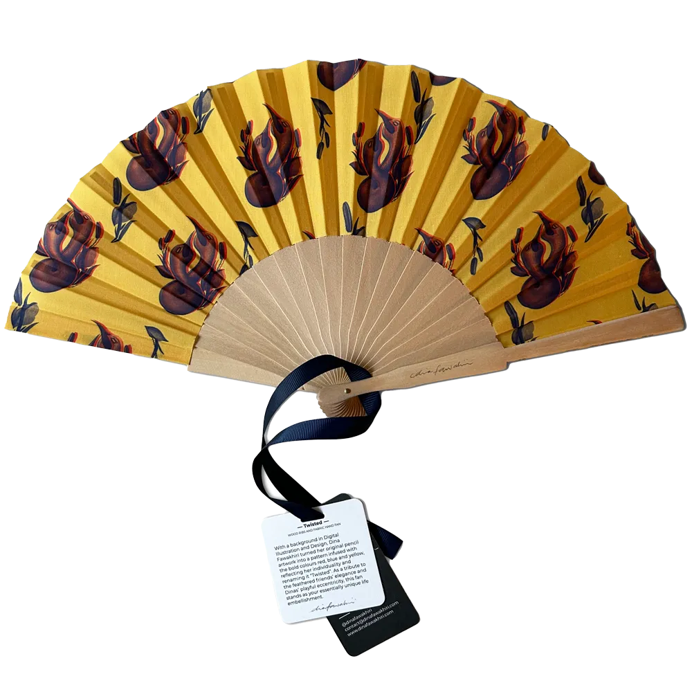 Wood ribs and fabric hand fan/ Print on fabric/ 23cm closed/ 41cm open
