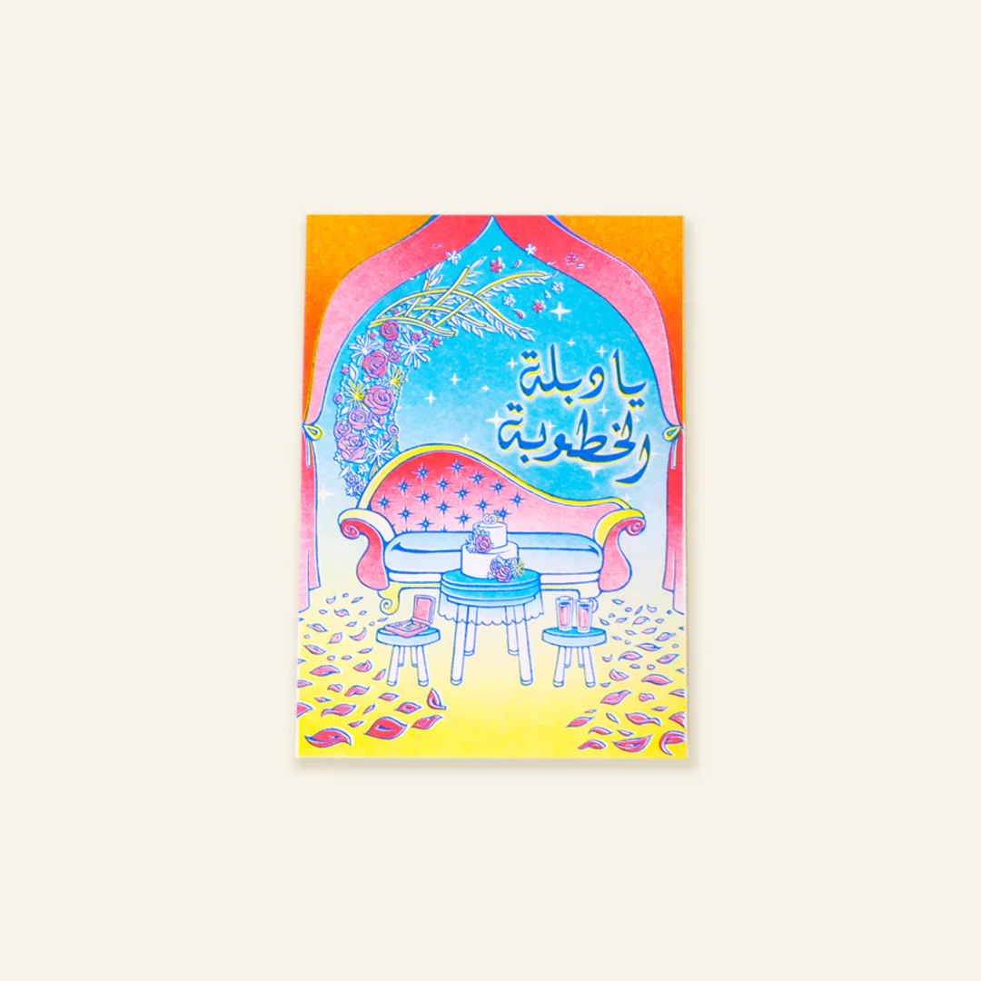 Capture the romance and excitement of the rings with this nostalgic design. "Ya Deblet El Khotouba" is a timeless phrase that instantly evokes the promise and joy of the engagement.