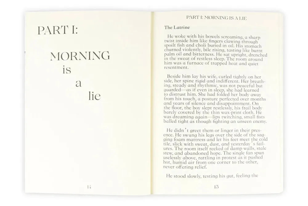 No One Leaves Clean is a visceral portrait of Ghana at the turn of the new millennium, where dreams, betrayals, and survival unfold in the shadows of urban life. Set against the raw streets and market circles of Takoradi and Accra, this novel traces the life of a man haunted by deferred aspirations, a wifeโs unrelenting desire for wealth, and the relentless weight of a nation caught between hope and disillusionment.