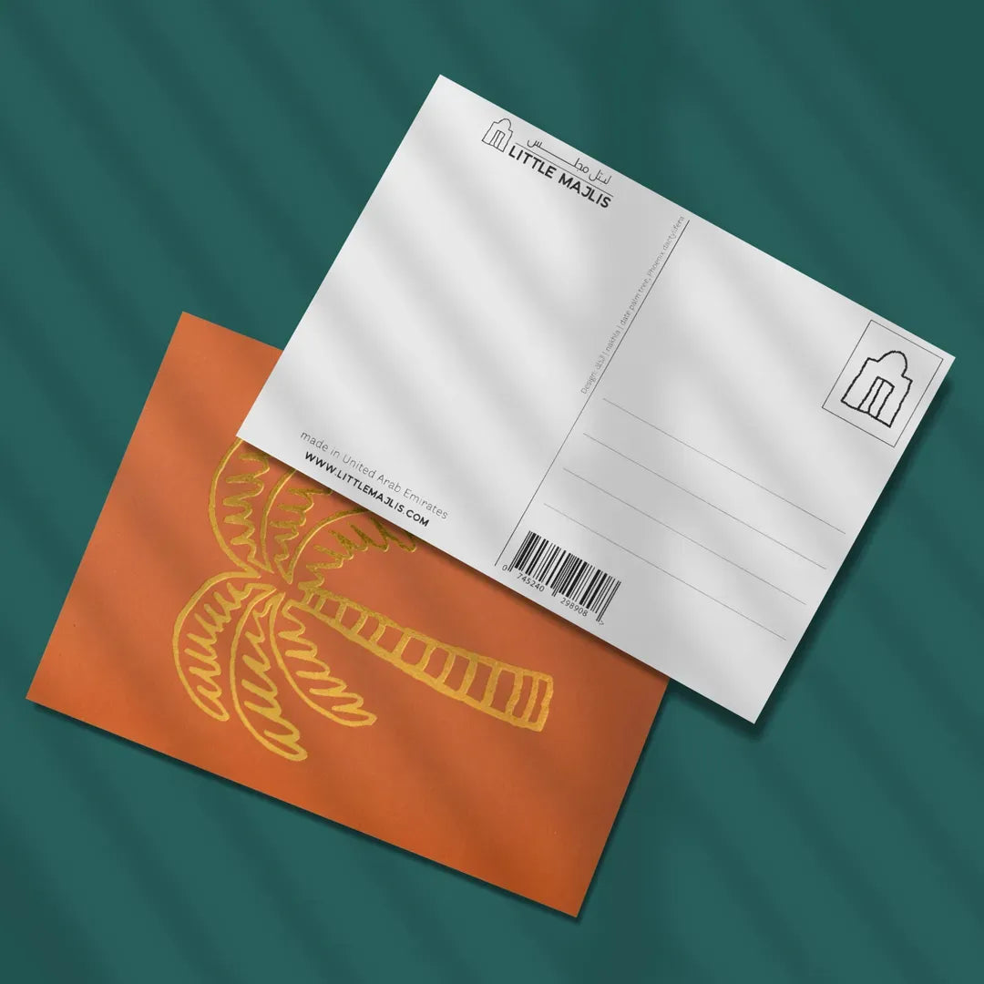 تحتفي هذه البطاقة البريدية الجديدة بشجرة النخيل التي تمثل جزءًا كبيرًا من التراث الإماراتي. تضم دولة الإمارات العربية المتحدة العديد من واحات النخيل، مثل واحة العين الشهيرة، التي يعود تاريخها إلى أكثر من 4000 عام. هذه البطاقة البريدية هي البطاقة البريدية المثالية لتذوق الإمارات العربية المتحدة - يمكنك إما إرسالها، أو ربما وضعها في إطار مع أحد تصميمات بطاقاتنا البريدية كتذكار للإمارات.